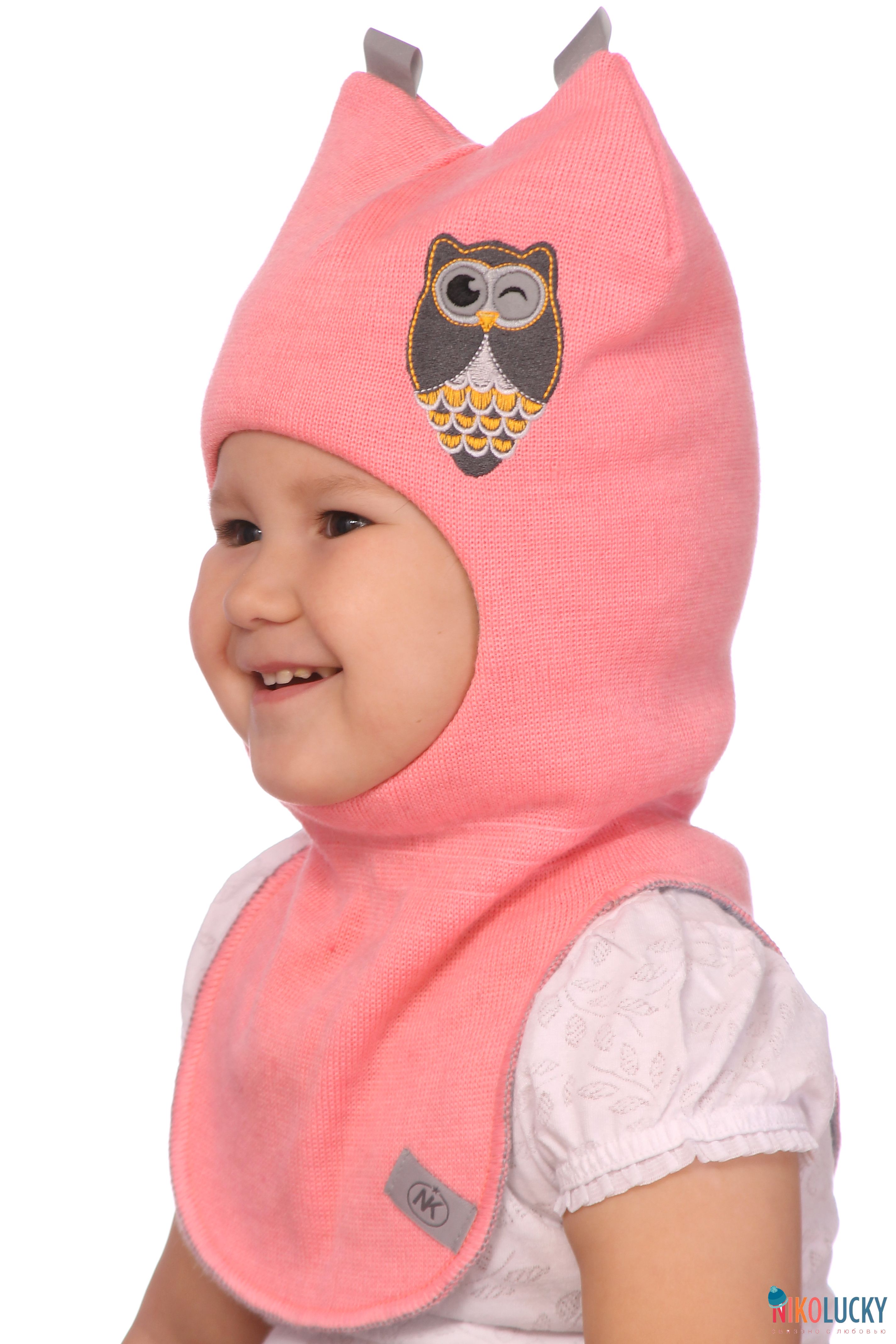 Спереди шлем украшен вышивкой в виде забавного совенка со светоотражающими глазами, сверху- две светоотражающие ленты.