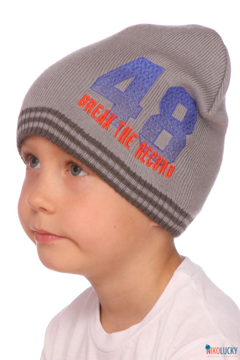 Шапка двойная для мальчика с цветной вышивкой.