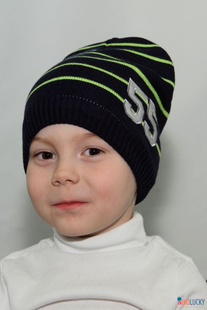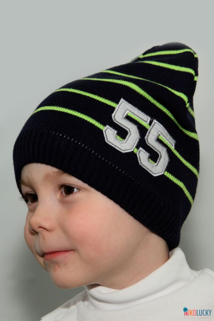 Шапка двойная для мальчика с цветной светоотражающей аппликацией в виде цифр.