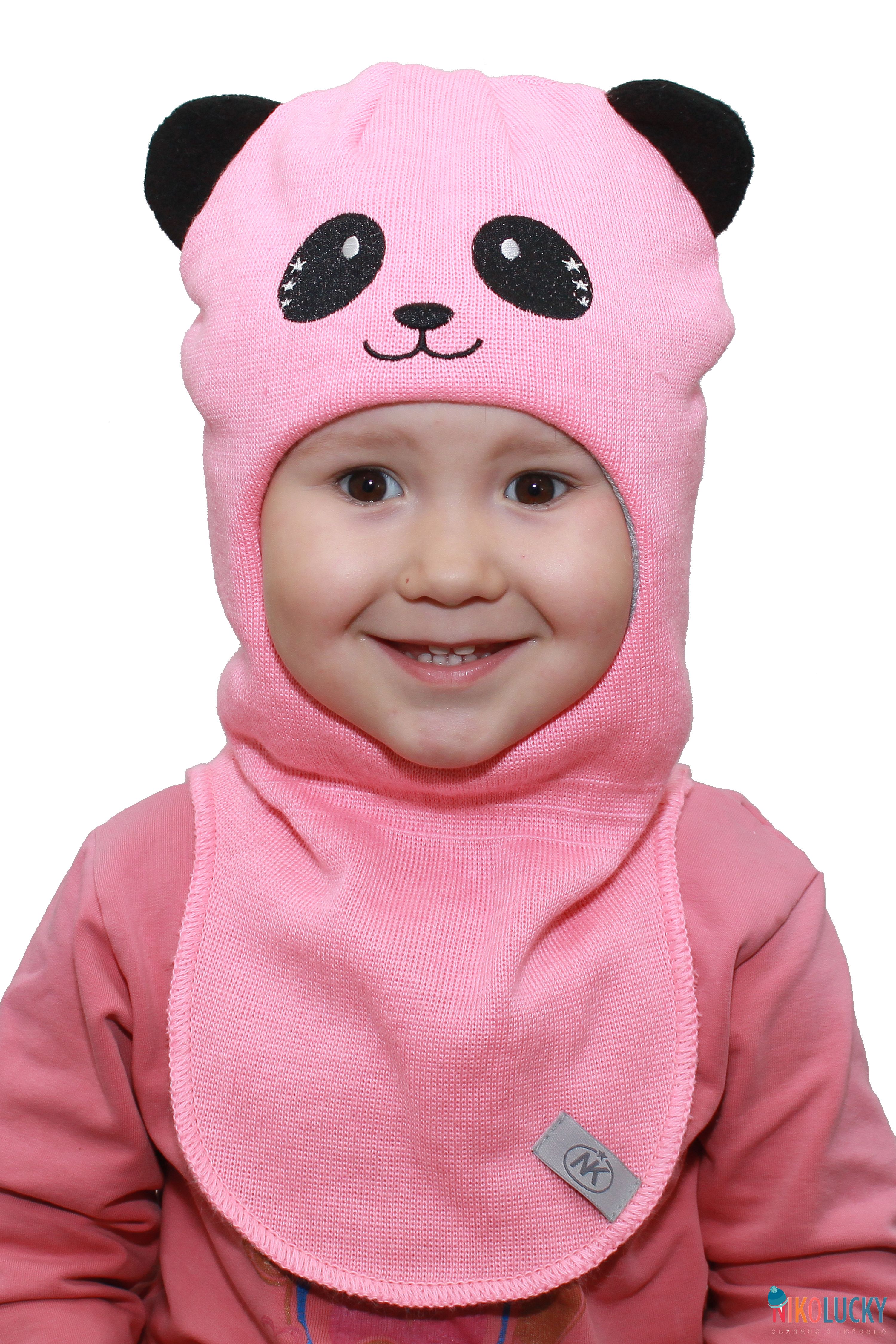 Шлем украшен вышивкой в виде мордочки панды.