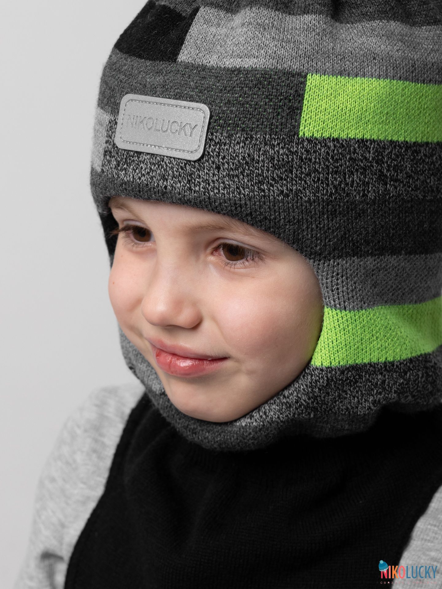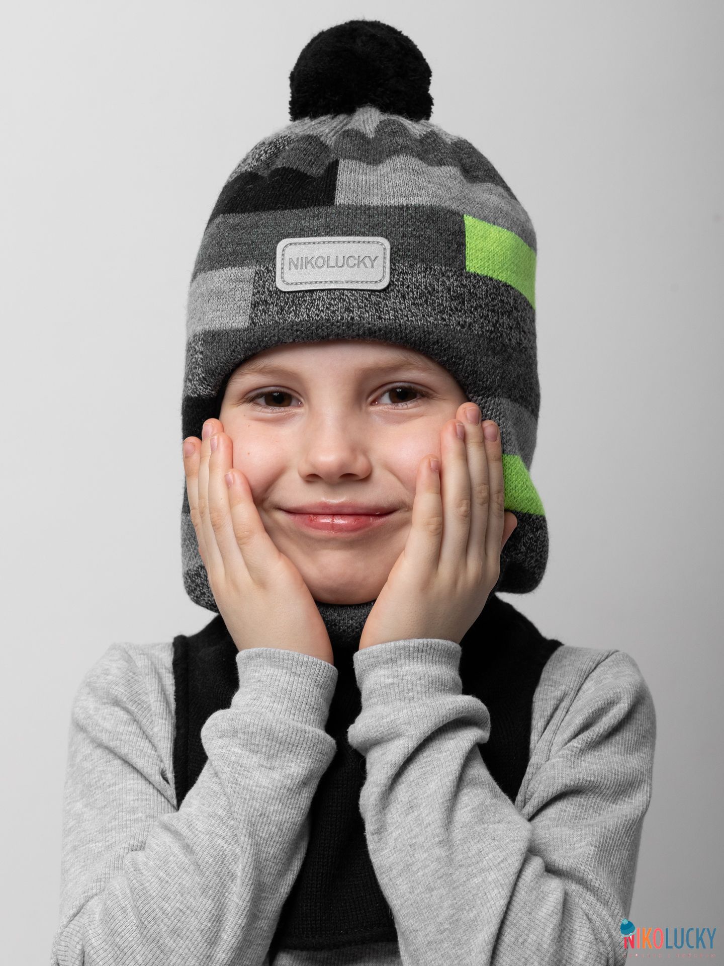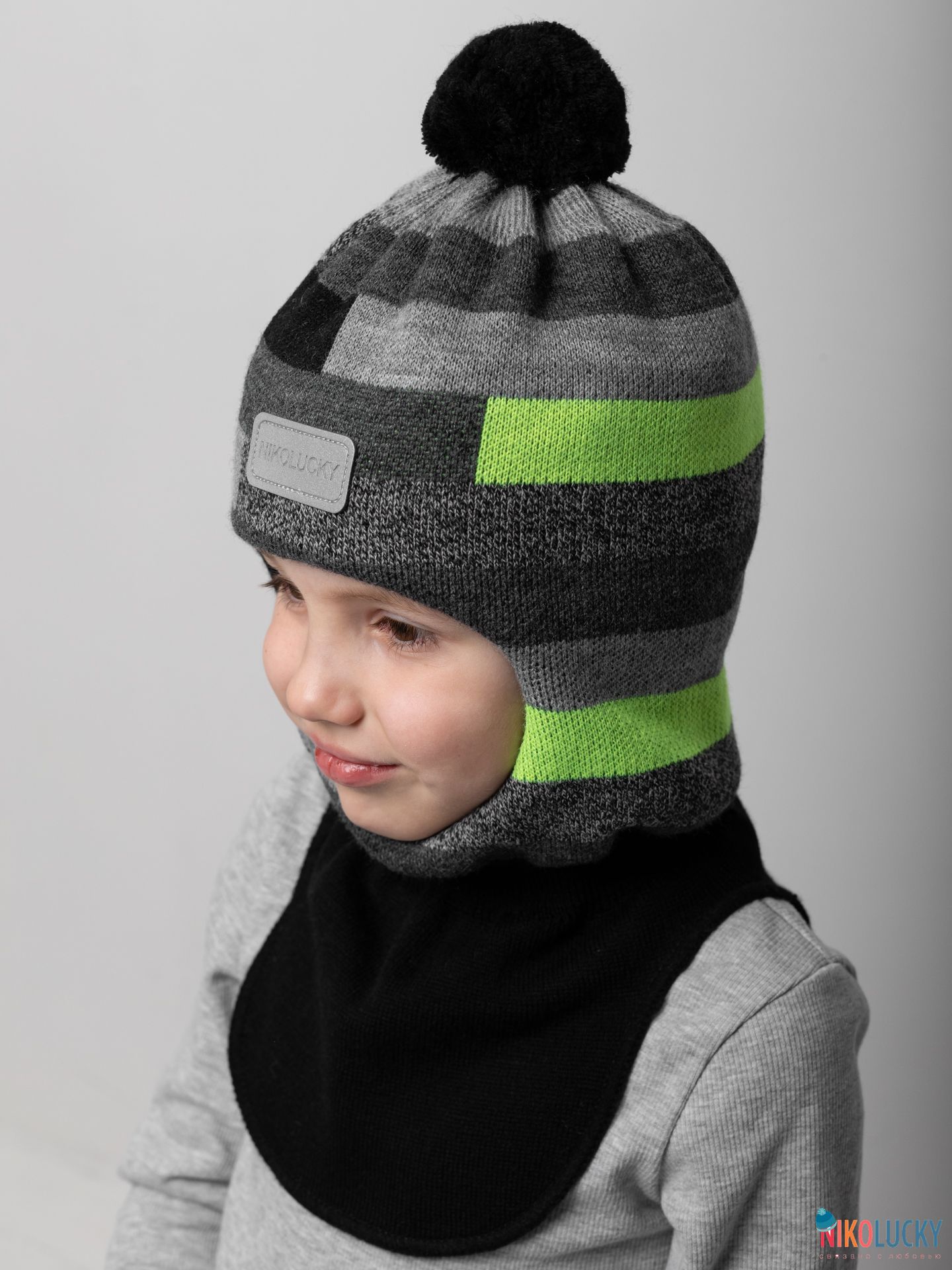 Шапка зимняя для мальчика выполнена из пряжи с 50% содержанием шерсти мериноса, подклад-95% хлопок,5%лайкра.