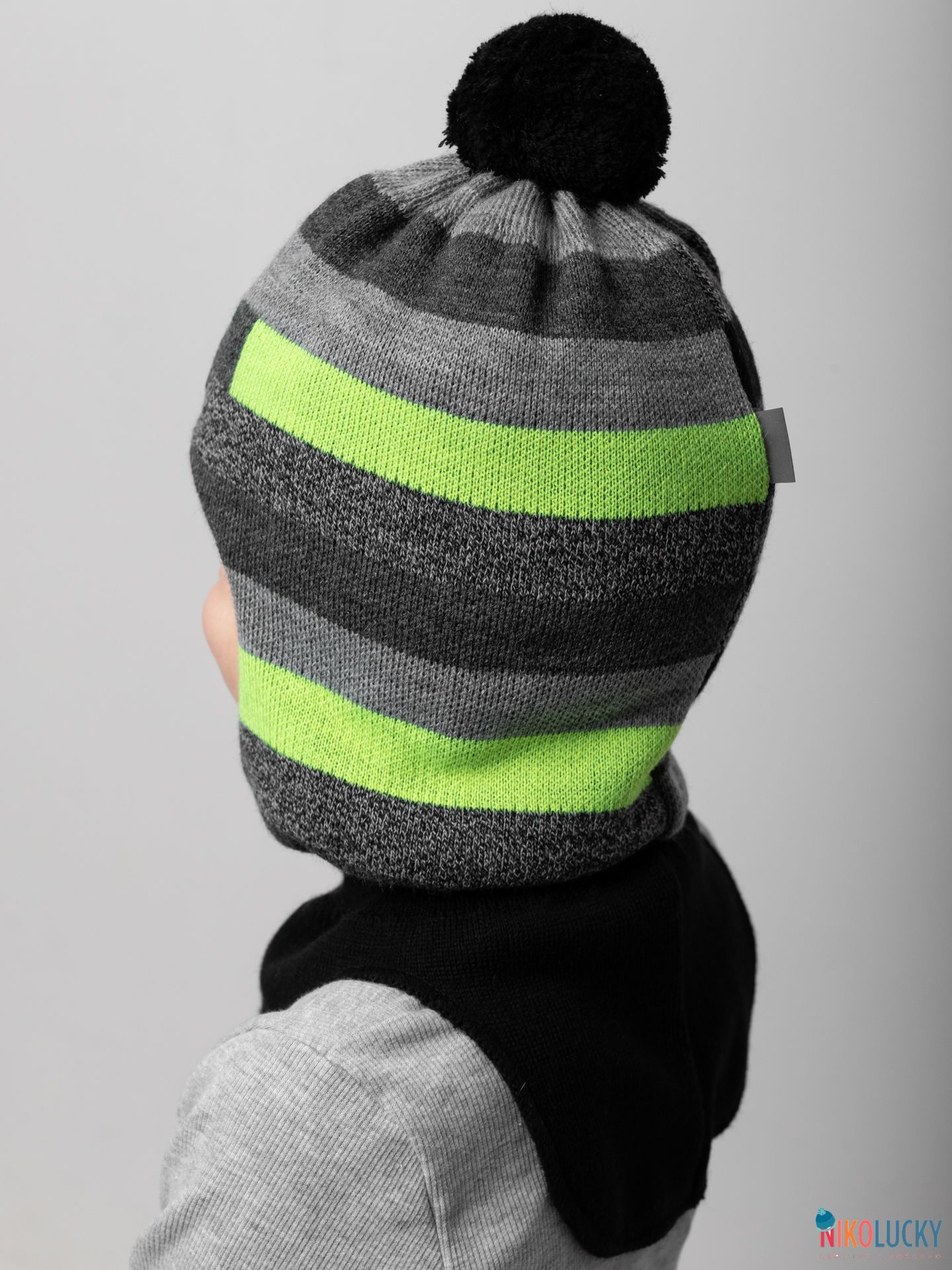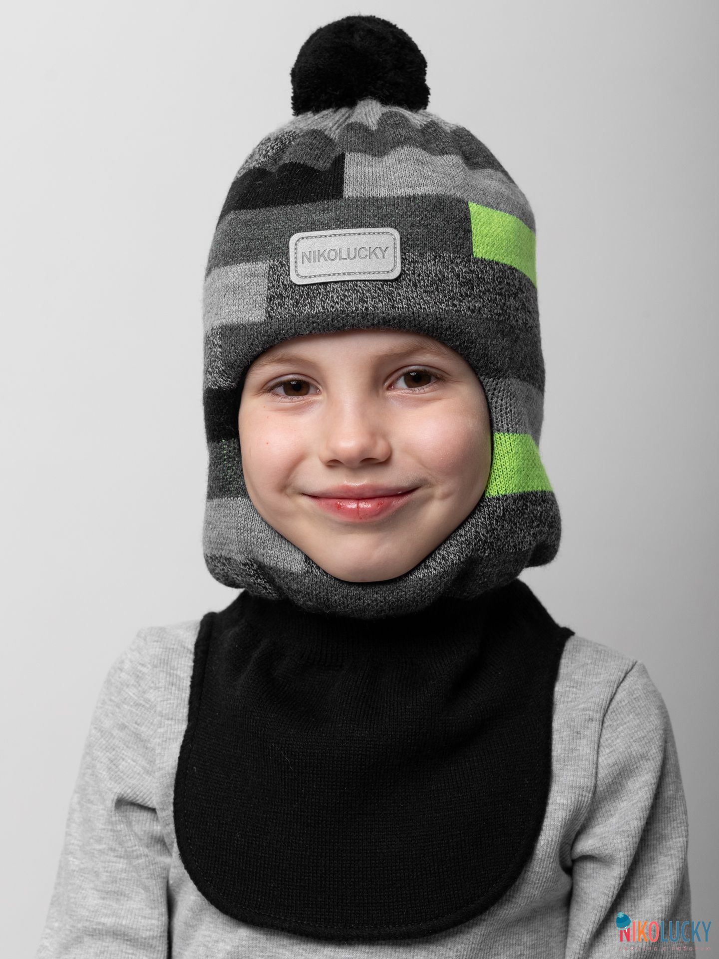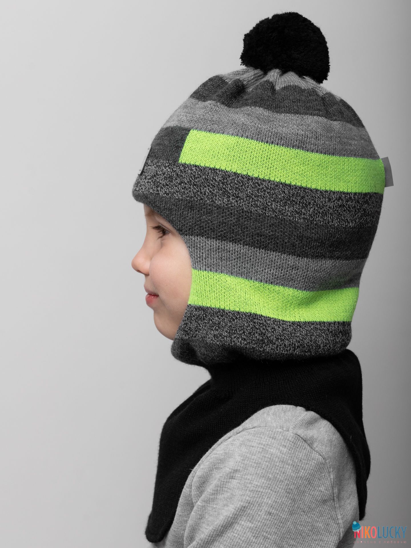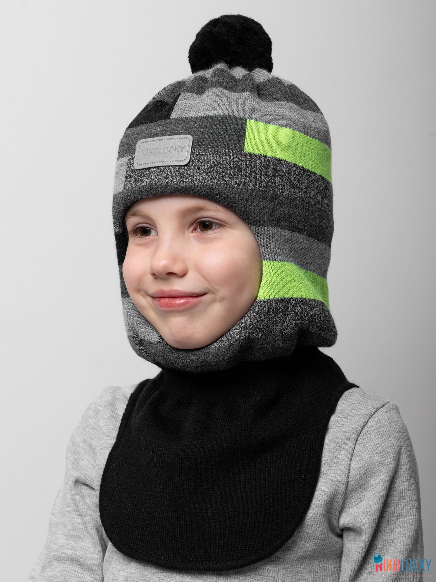 Шапка зимняя для мальчика выполнена из пряжи с 50% содержанием шерсти мериноса, подклад-95% хлопок,5%лайкра.