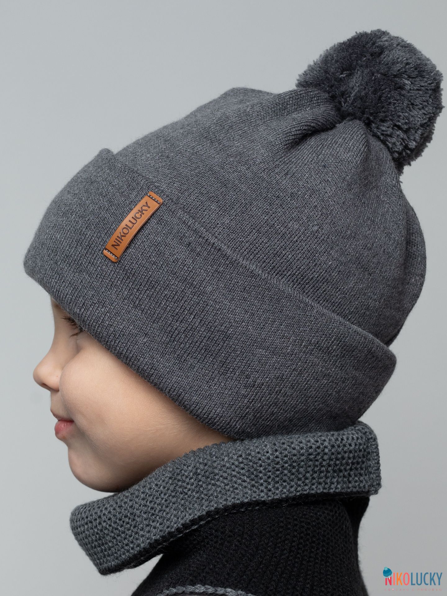 Шапка составит отличный комплект с двойным, двухсторонним шарфом(снудом) артикул 22-33 цвет темно-синий,джинс размер 1.