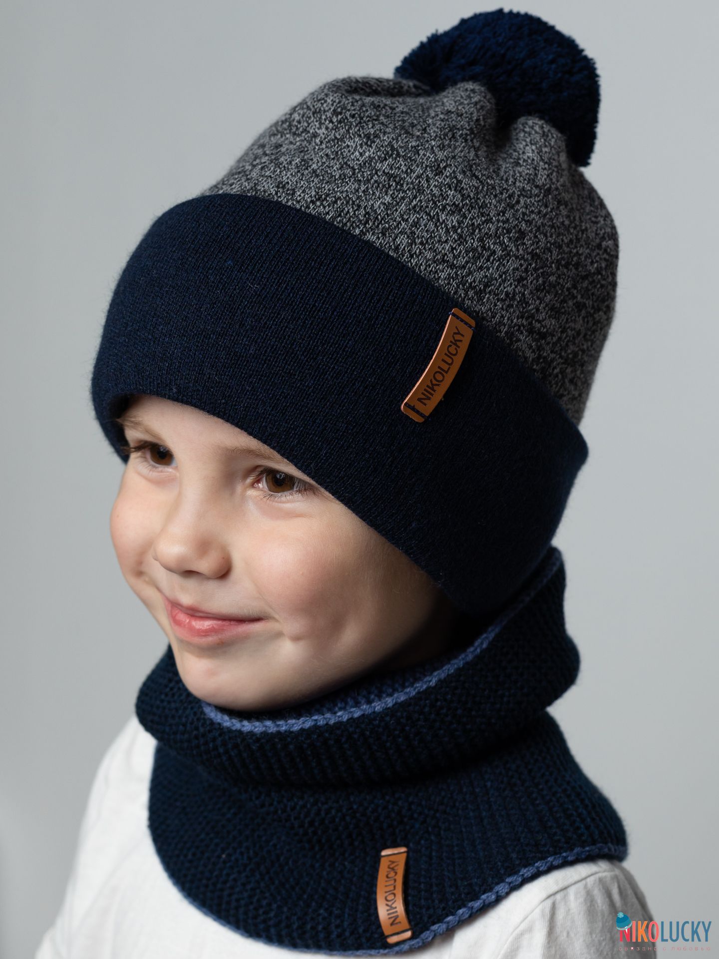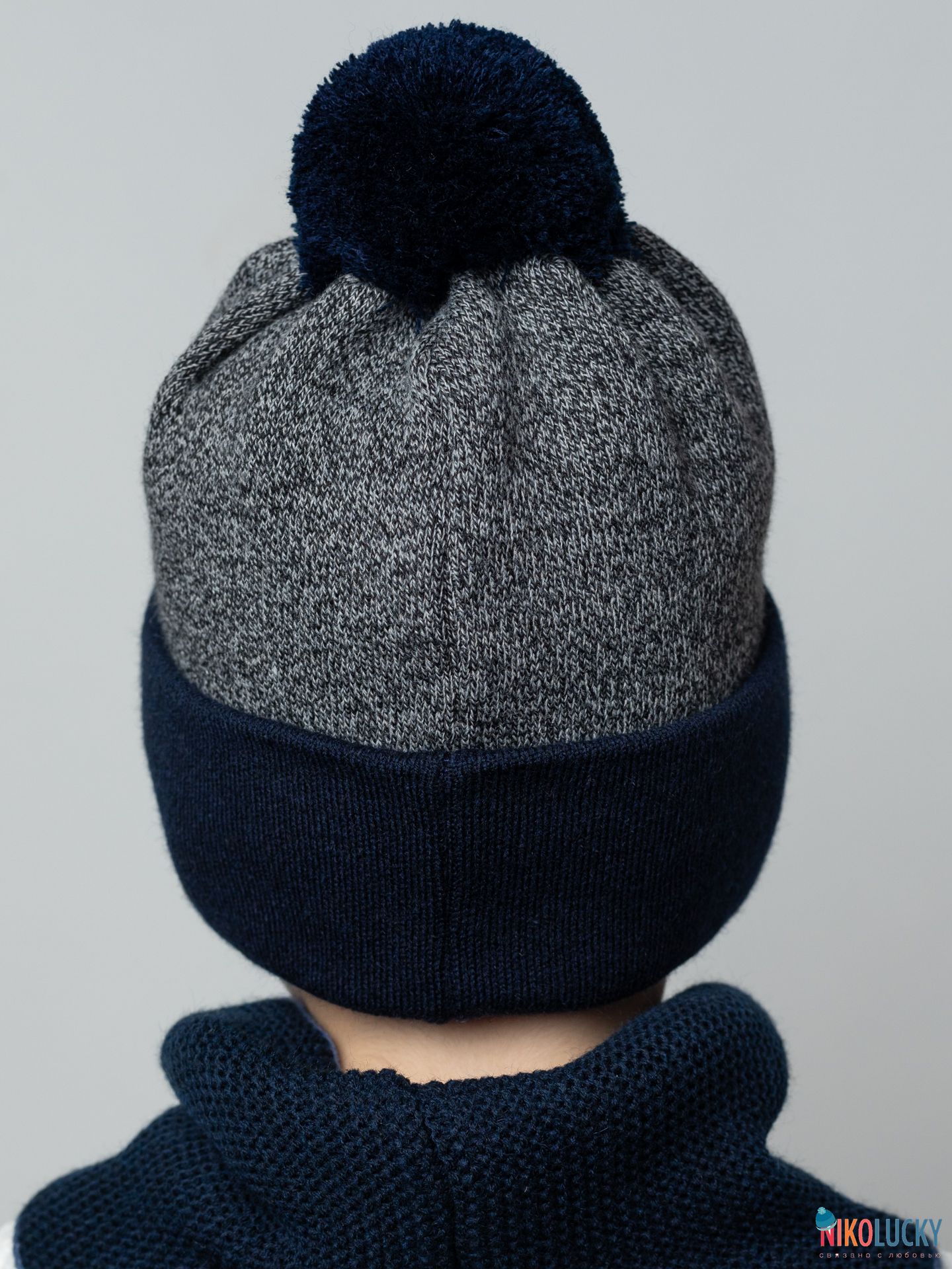 Шапка составит отличный комплект с двойным, двухсторонним шарфом(снудом) артикул 22-33 цвет темно-синий,джинс размер 1.
