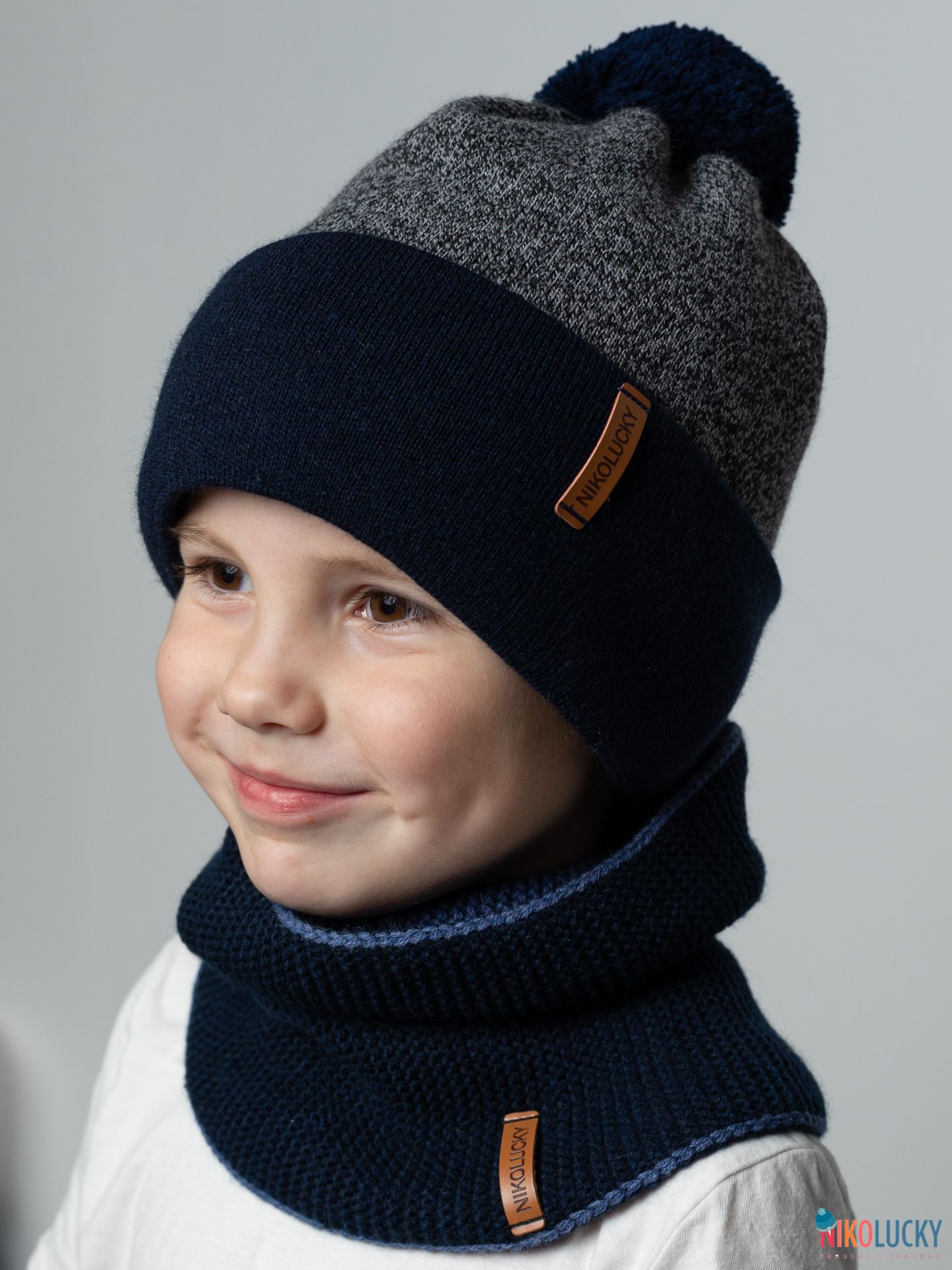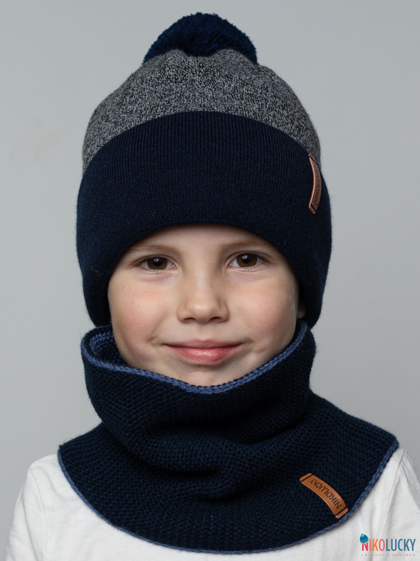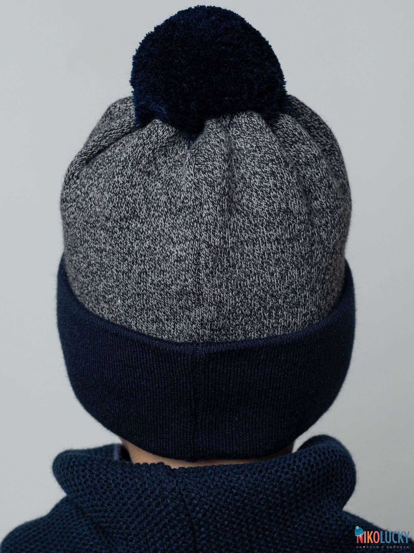 Шапка составит отличный комплект с двойным, двухсторонним шарфом(снудом) артикул 22-33 цвет темно-синий,джинс размер 1.