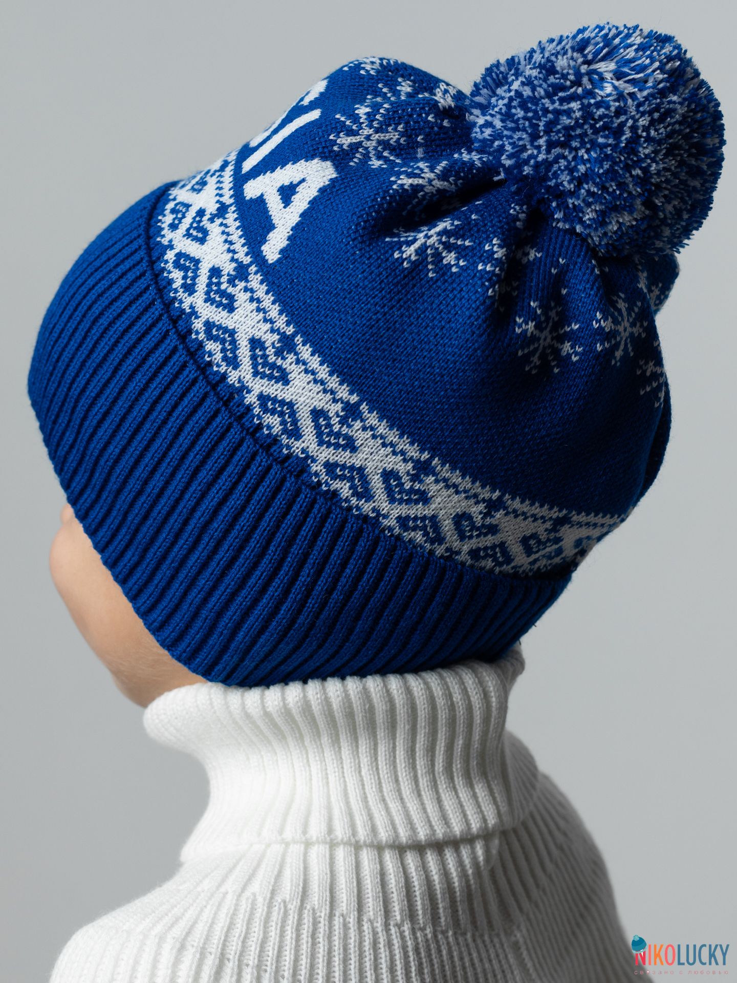 Отличительной особенностью является вывязанная надпись "RUSSIA", которая придает шапке не только практическую, но и символическую ценность.