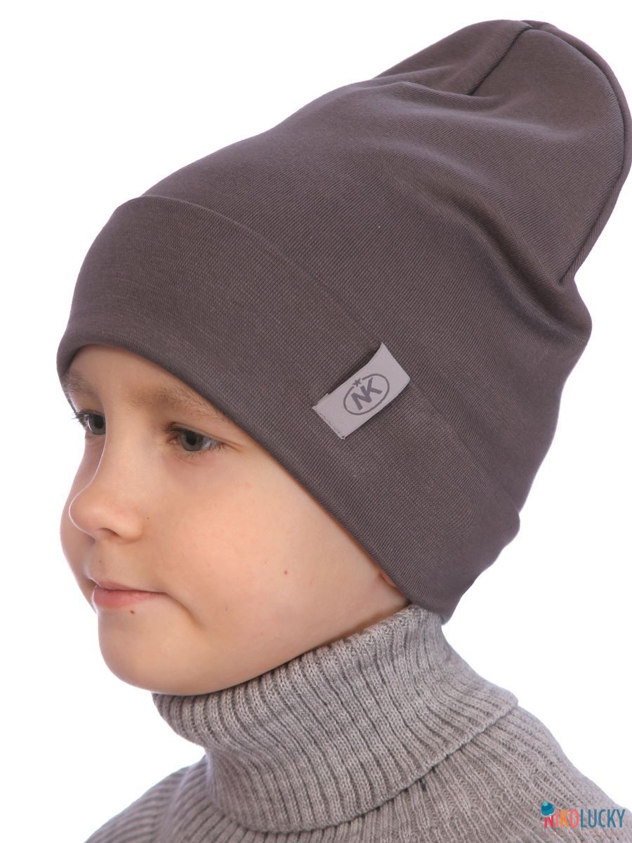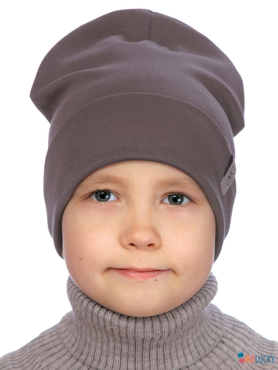 Шапка двойная для мальчика с отворотом и фирменной нашивкой изготовленлена из мягкого и эластичного хлопкового трикотажного полотна с содержанием лайкры, благодаря которому шапка в процессе носки держит форму и не вытягивается.