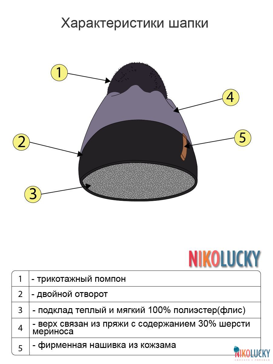 Верх связан из пряжи с содержанием шерсти мериноса,а подклад теплый и мягкий 100% полиэстер(флис).