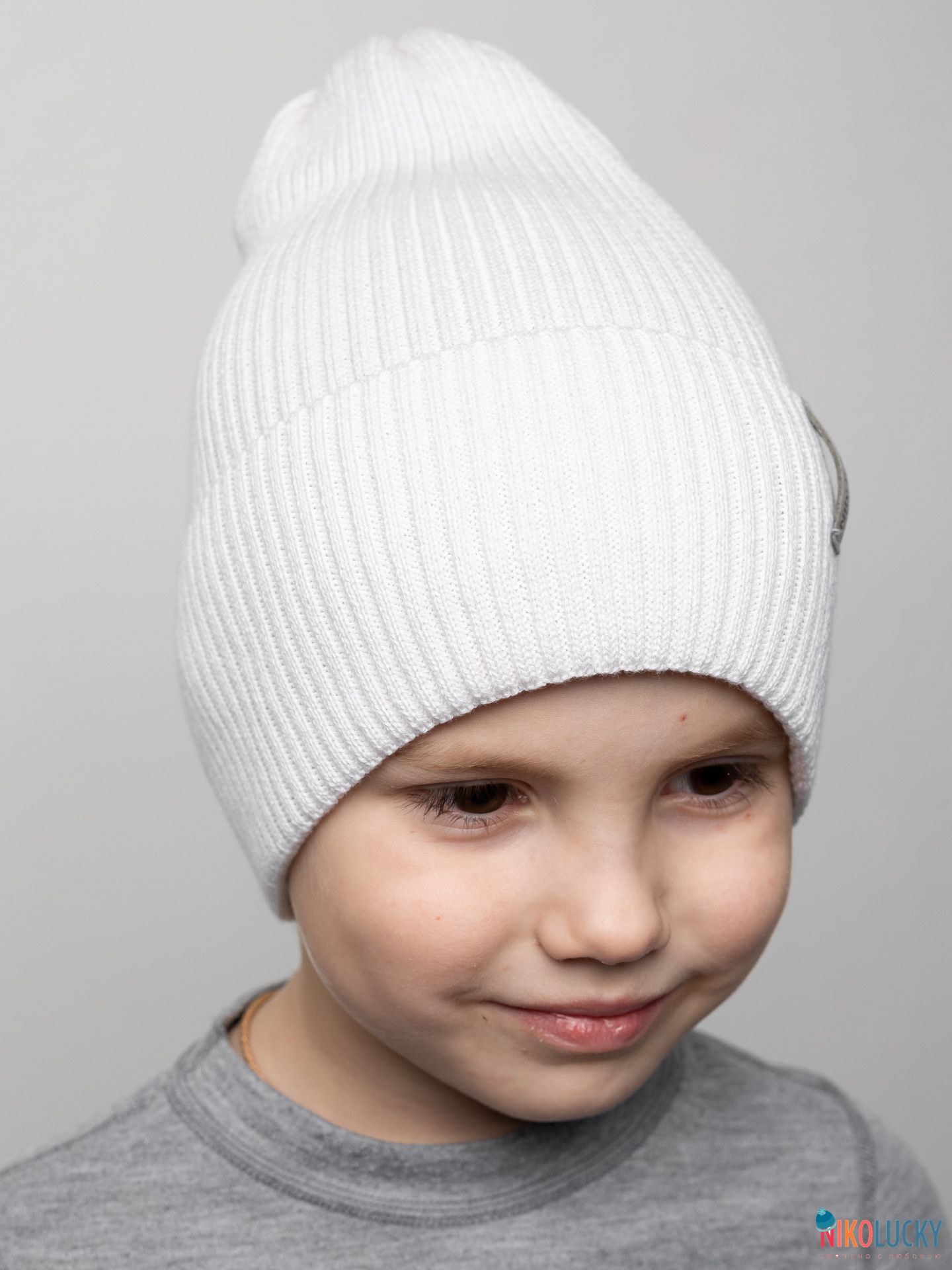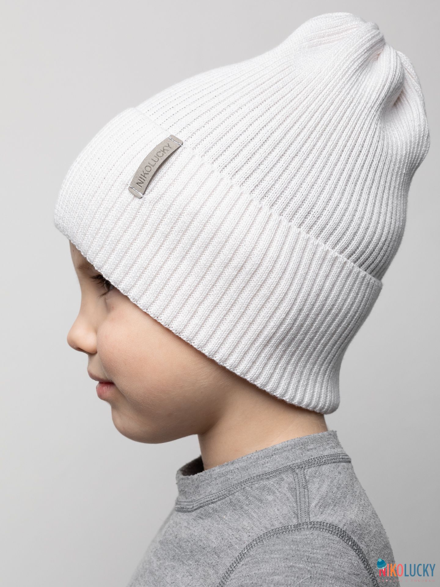 Шапка выполнена в классическом бини стиле, что делает ее универсальной для мальчиков и девочек.