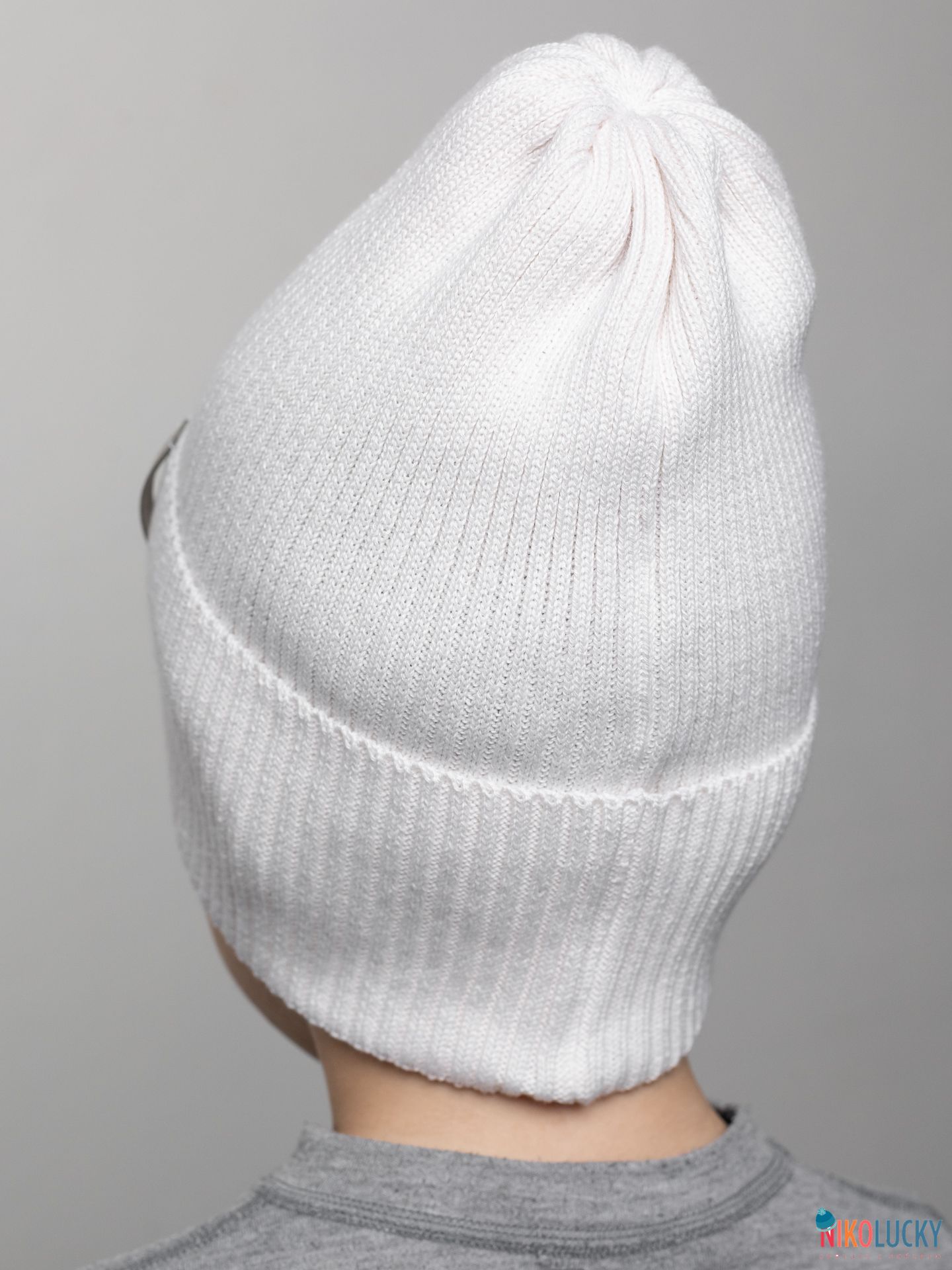 Шапка на сезон осень-весна связана эластичным переплетением "в рубчик" из пряжи с составом 50%хлопок 50%акрил. Шапка одинарная с высоким отвором и без подкладки.