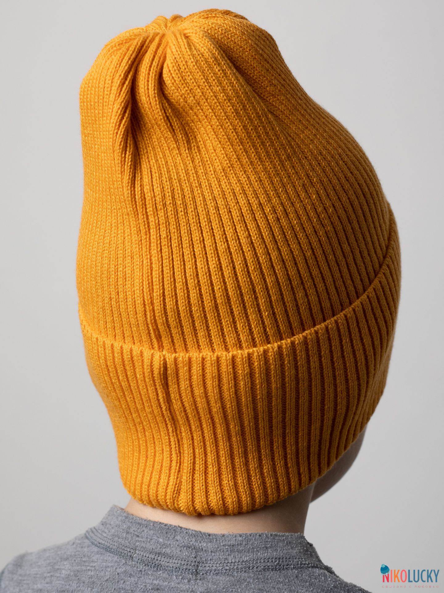 Шапка выполнена в классическом бини стиле, что делает ее универсальной для мальчиков и девочек.
