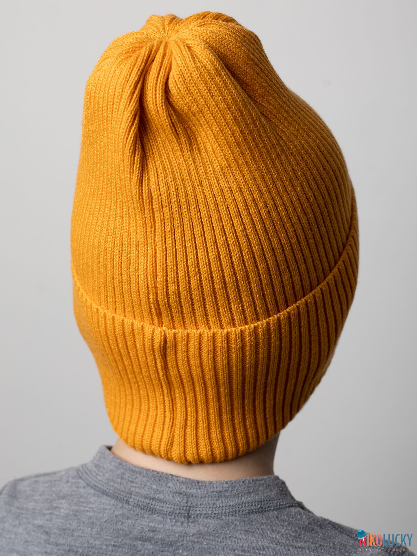 Шапка выполнена в классическом бини стиле, что делает ее универсальной для мальчиков и девочек.