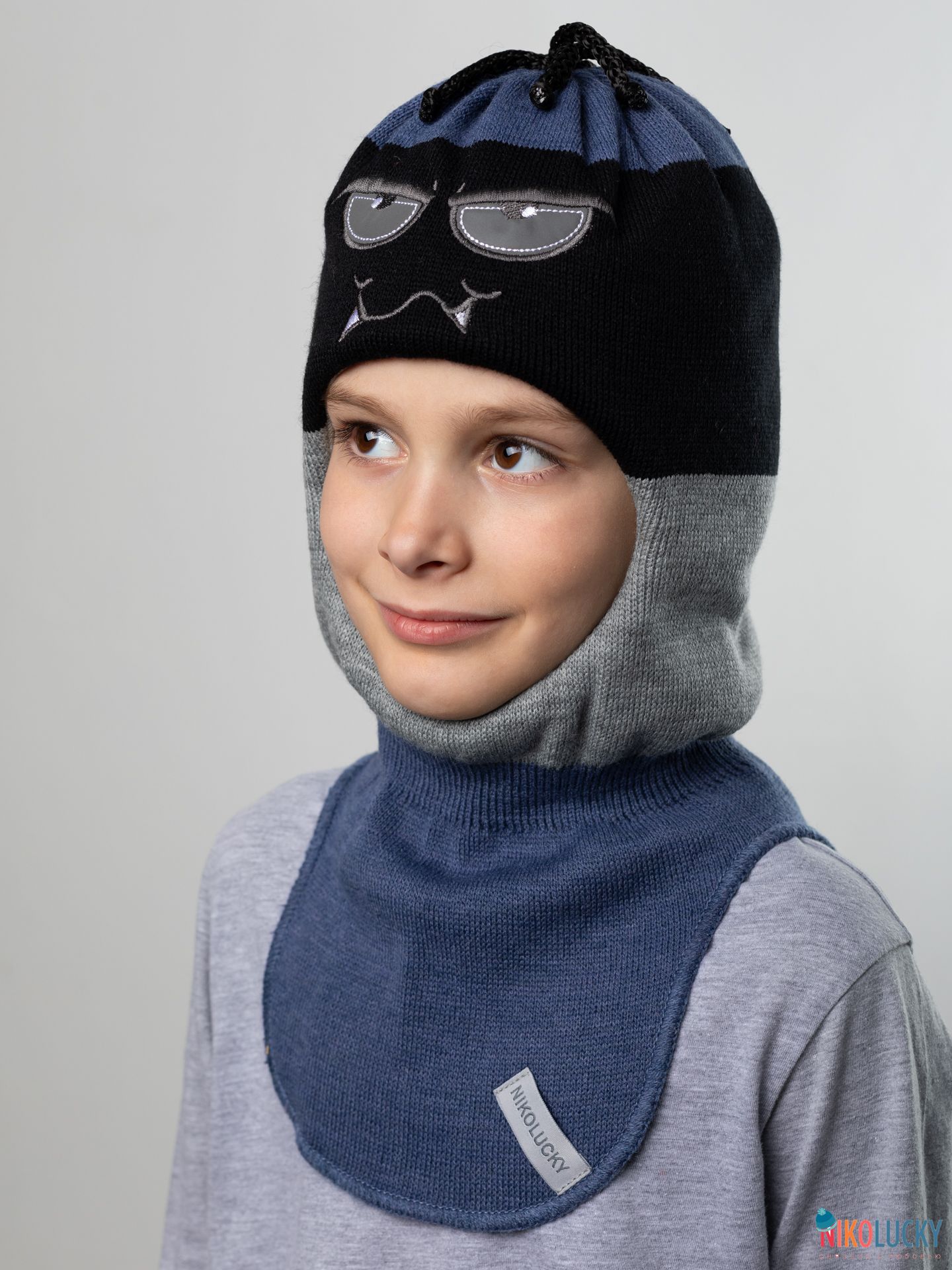 Шапка-шлем 19101-06, цвет черный, серый, джинс р. 50-52
