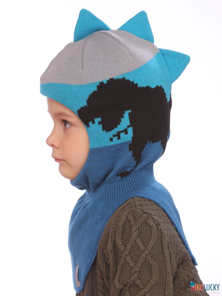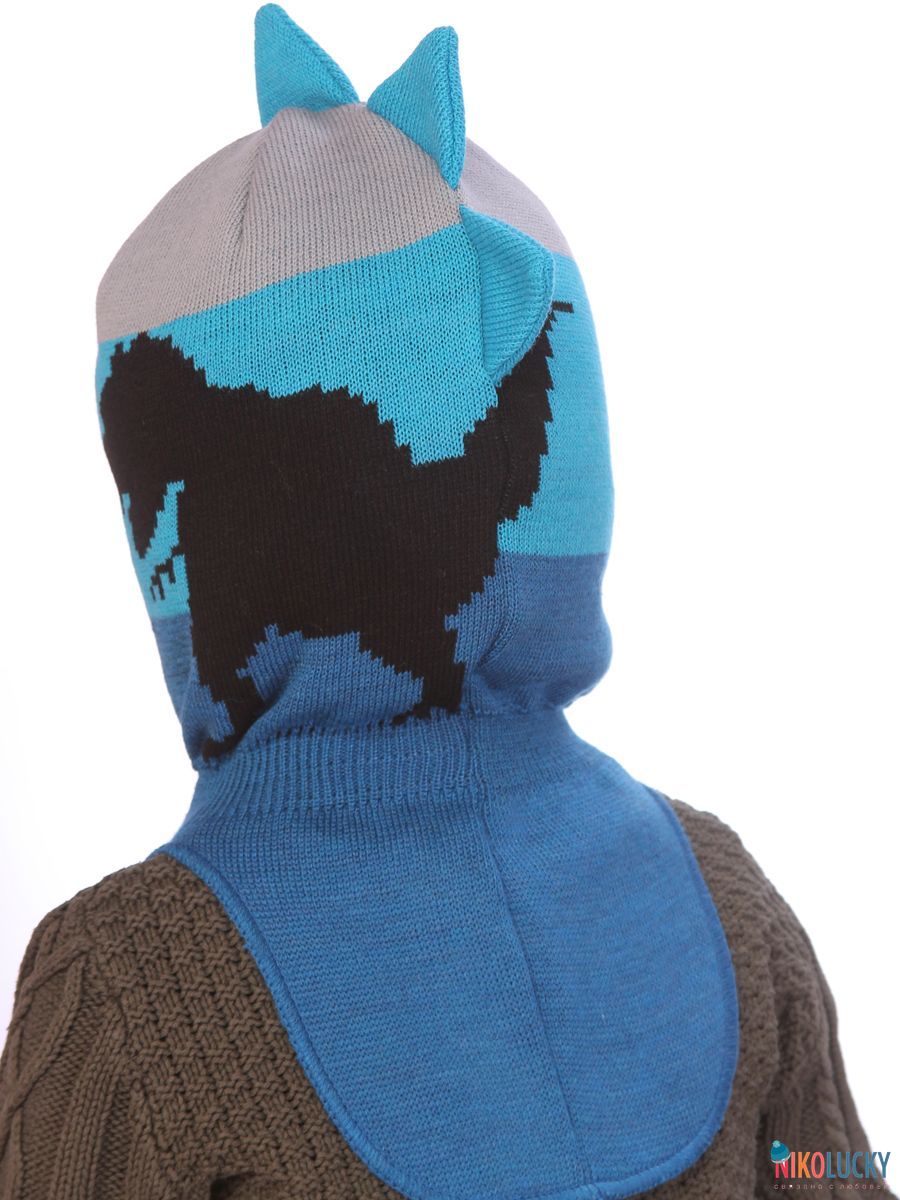 Шапка-шлем двойной зимний для мальчика с трикотажными озорными гребешками.