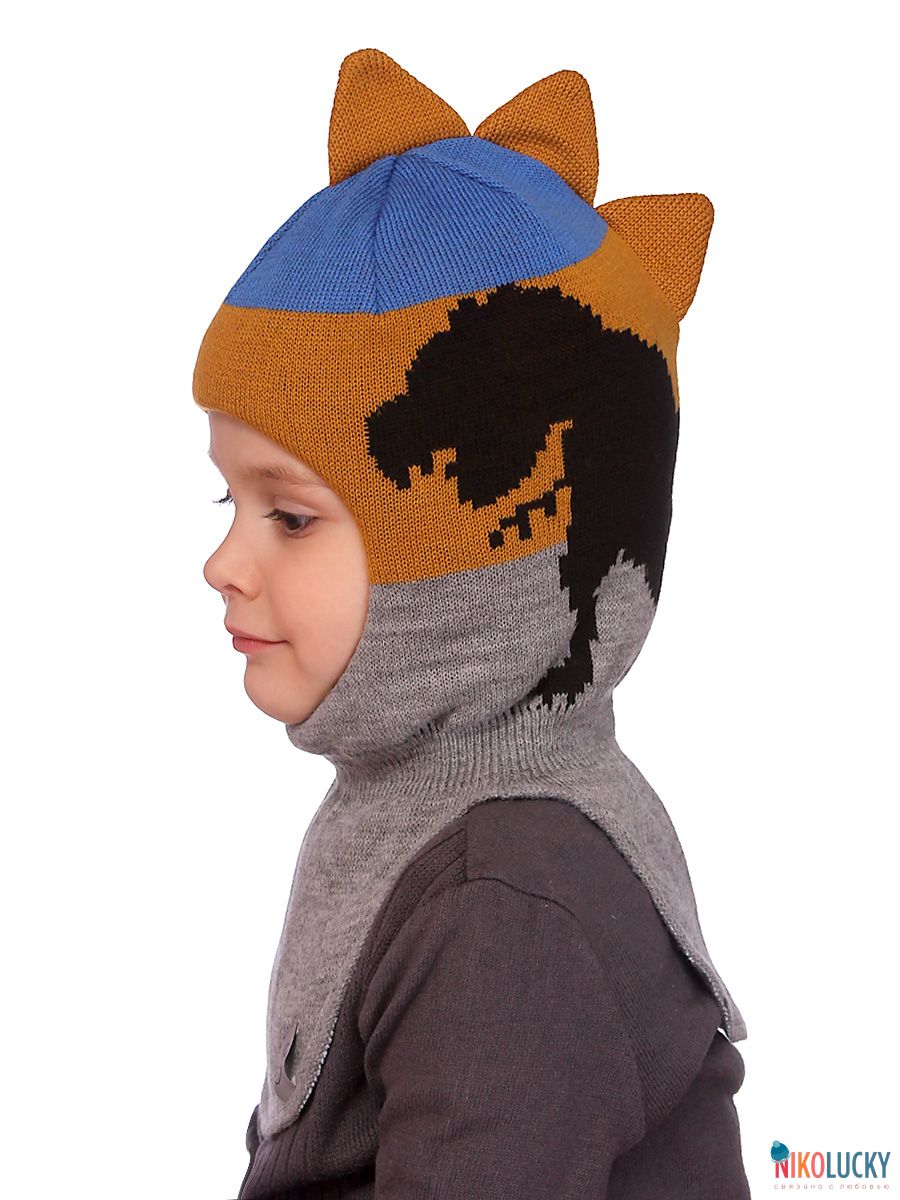 Шапка-шлем двойной зимний для мальчика с трикотажными озорными гребешками.