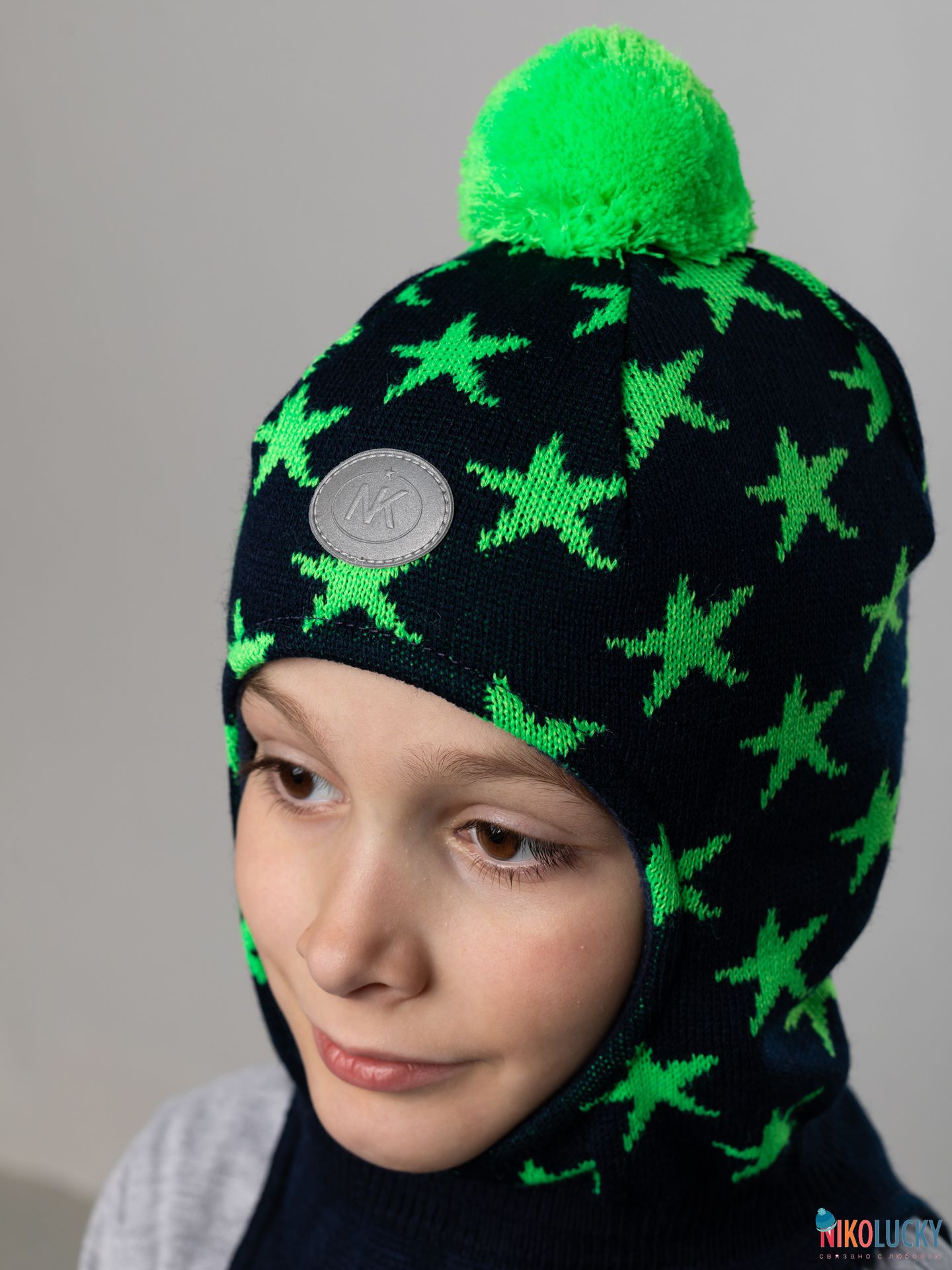 Верх шлема выполнен из мягкого и гипоаллергенного 100% акрила, подклад- теплый флис (100% полиэстер).