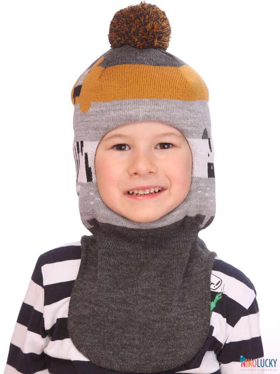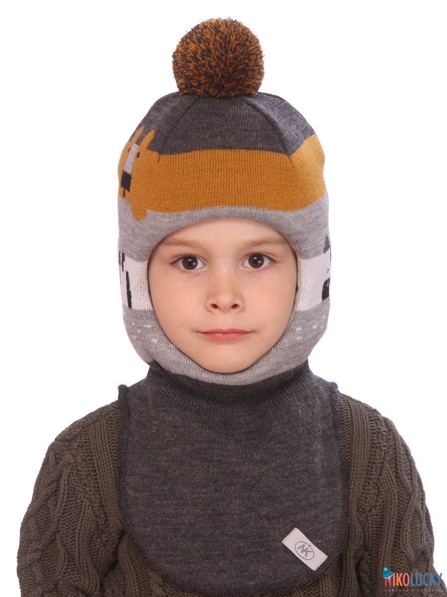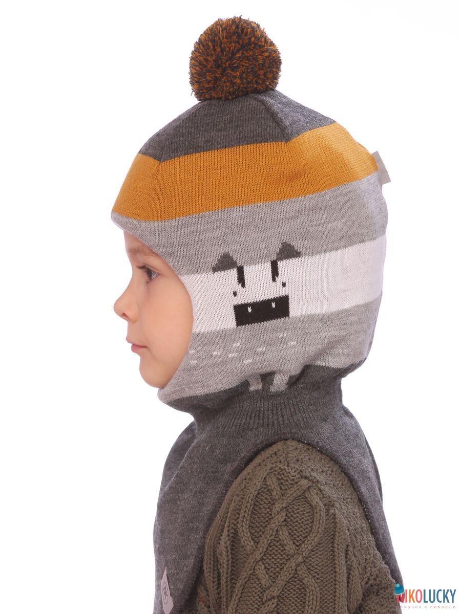Шапка-шлем 21101-06, цвет серый,горчичный р. 52-54