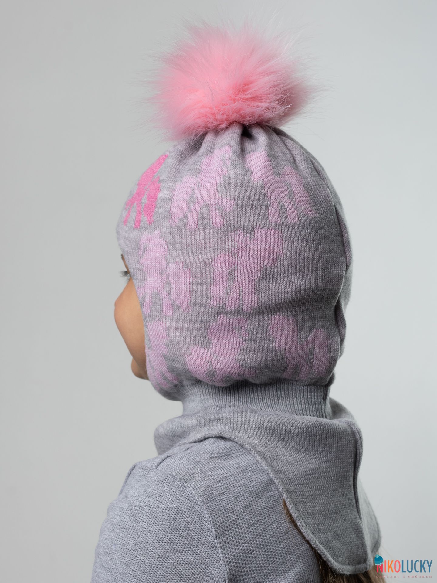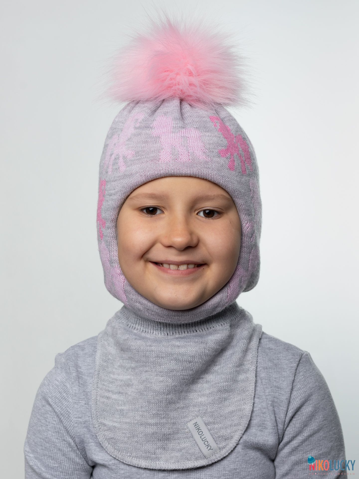 Особым украшением головного убора для девочки является помпон нежно-розового цвета из искусственного меха диаметром 14 см. (под натуральный), который можно легко снять перед стиркой.