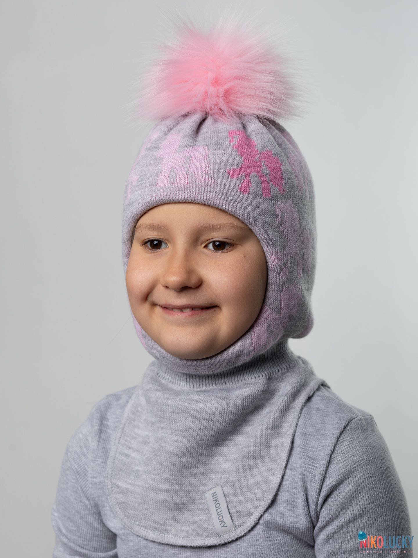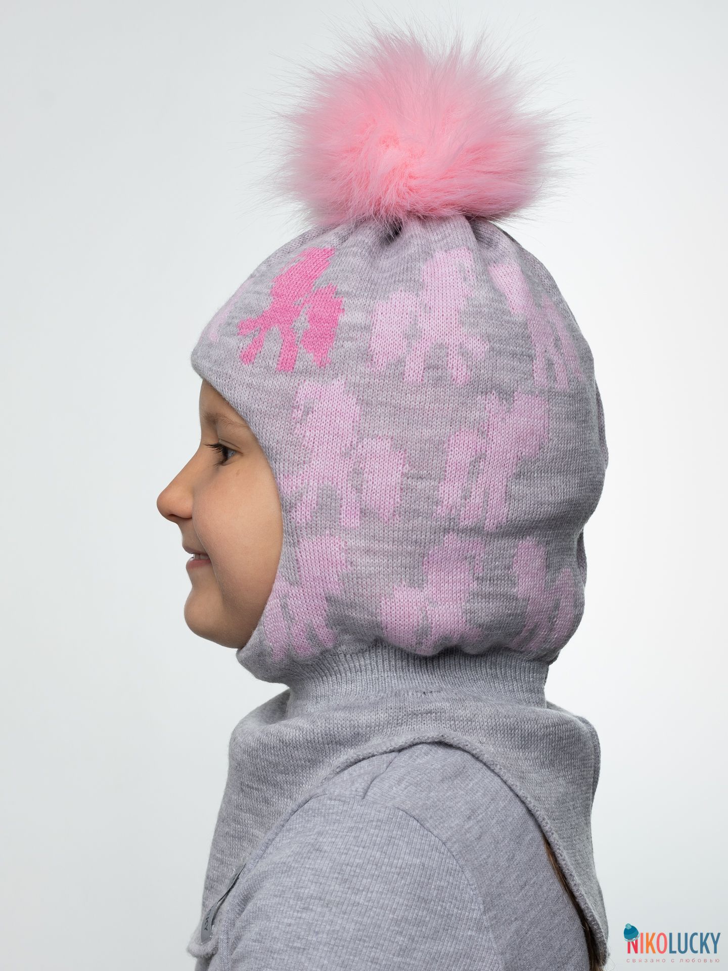 Особым украшением головного убора для девочки является помпон нежно-розового цвета из искусственного меха диаметром 14 см. (под натуральный), который можно легко снять перед стиркой.