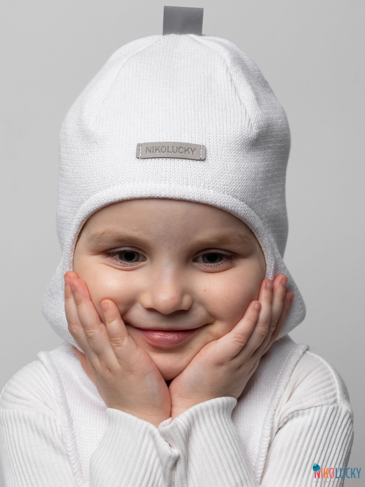 Головной убор для девочки украшает фирменная нашивка "NIKOLUCKY" из кожзама, а для дополнительной безопасности ребенка в темное время суток, сверху пришита светоотражающая тесьма.