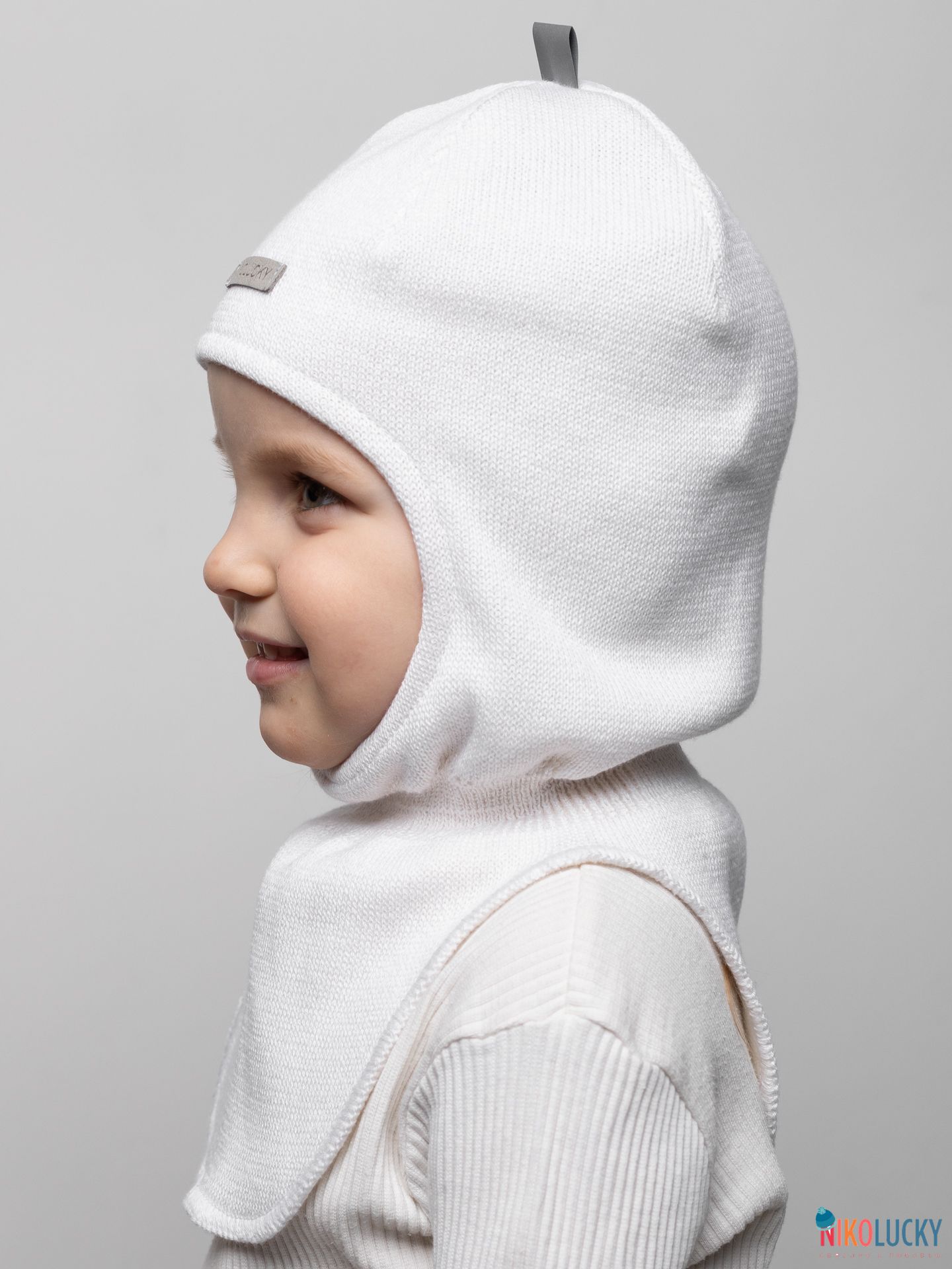 Головной убор для девочки украшает фирменная нашивка "NIKOLUCKY" из кожзама, а для дополнительной безопасности ребенка в темное время суток, сверху пришита светоотражающая тесьма.