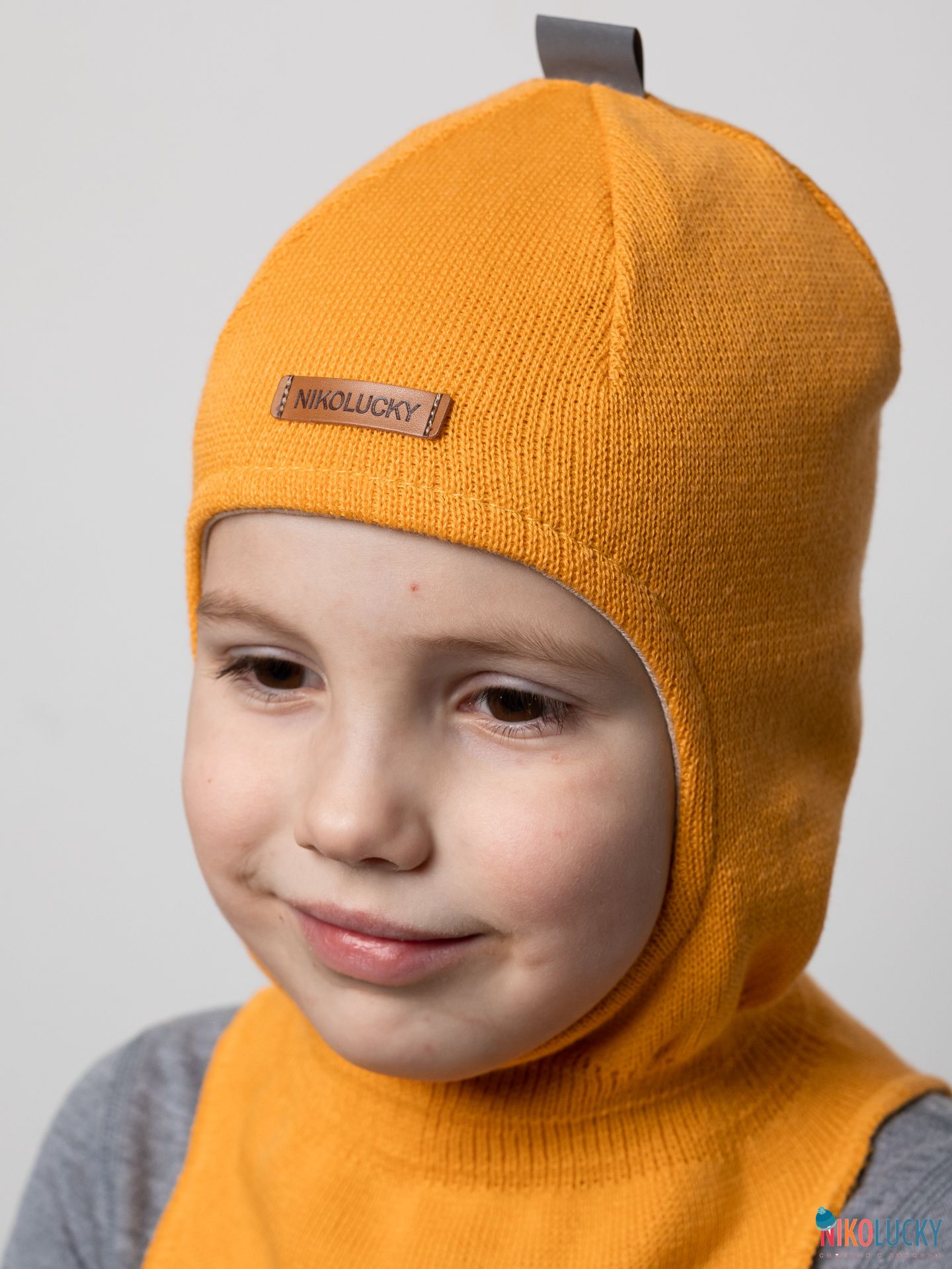Головной убор для мальчика украшает фирменная нашивка "NIKOLUCKY" из кожзама, а для дополнительной безопасности ребенка в темное время суток, сверху пришита светоотражающая тесьма.