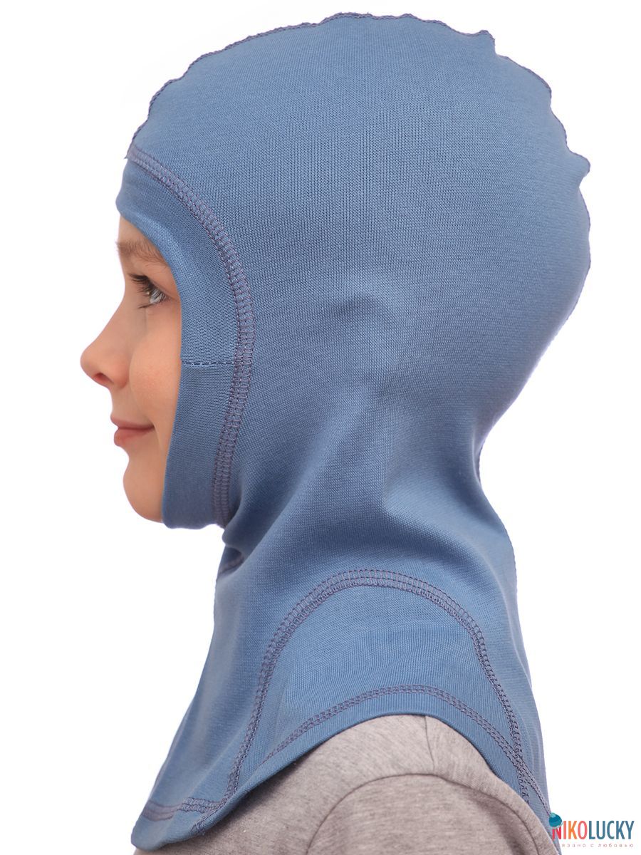 Шлем детский изготовлен из трикотажного полотна с натуральным составом 95% хлопок 5% лайкра, обладающего отличными гигроскопическими свойствами.