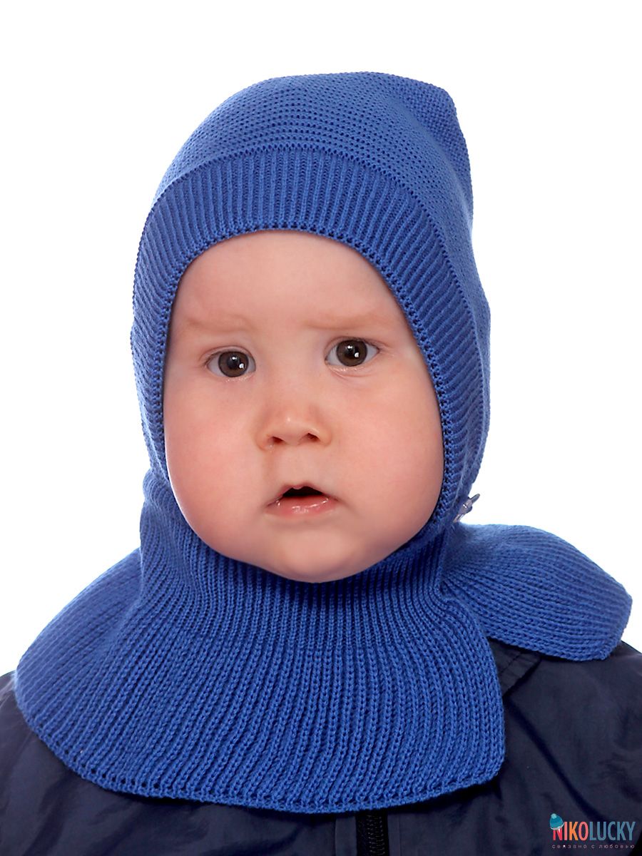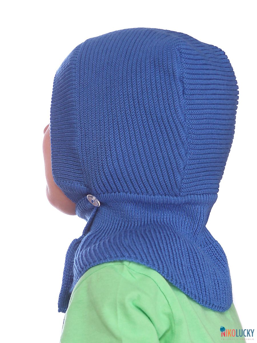 Шапка-шлем двойной с застежкой на пуговицу подойдет для девочки и для мальчика.
