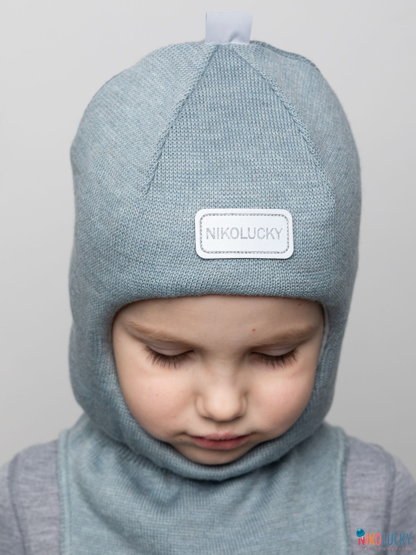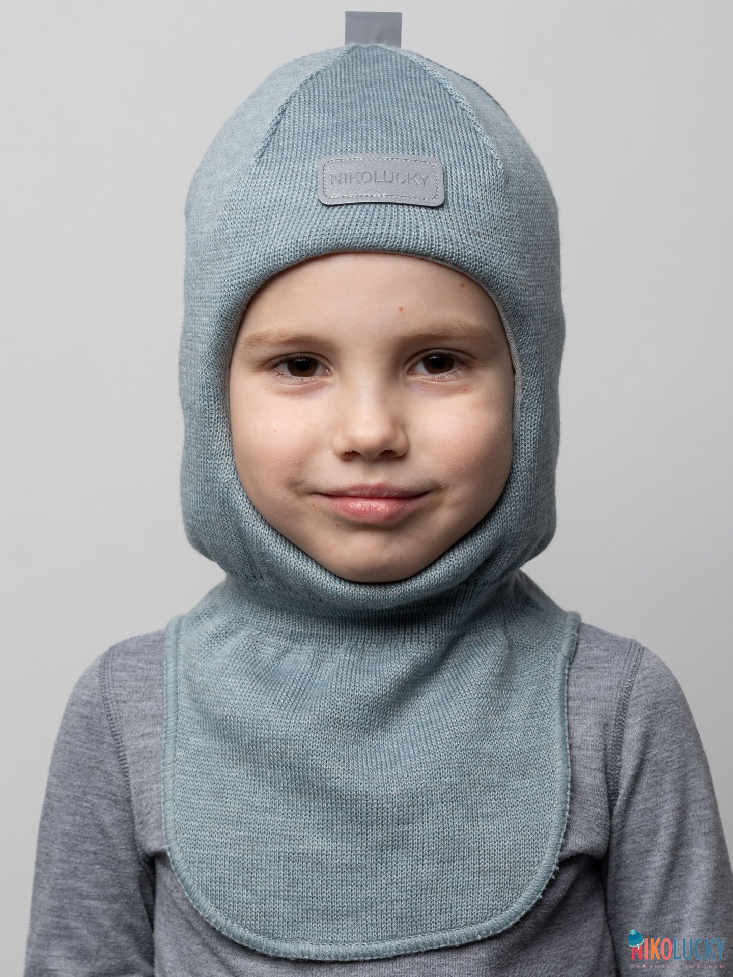 Верх выполнен из пряжи с 50% содержанием шерсти мериноса, подклад-100% хлопок, утеплитель-современный, легкий, дышащий и очень теплый синтепон Сиберия, который идет по всей голове (кроме манишки).