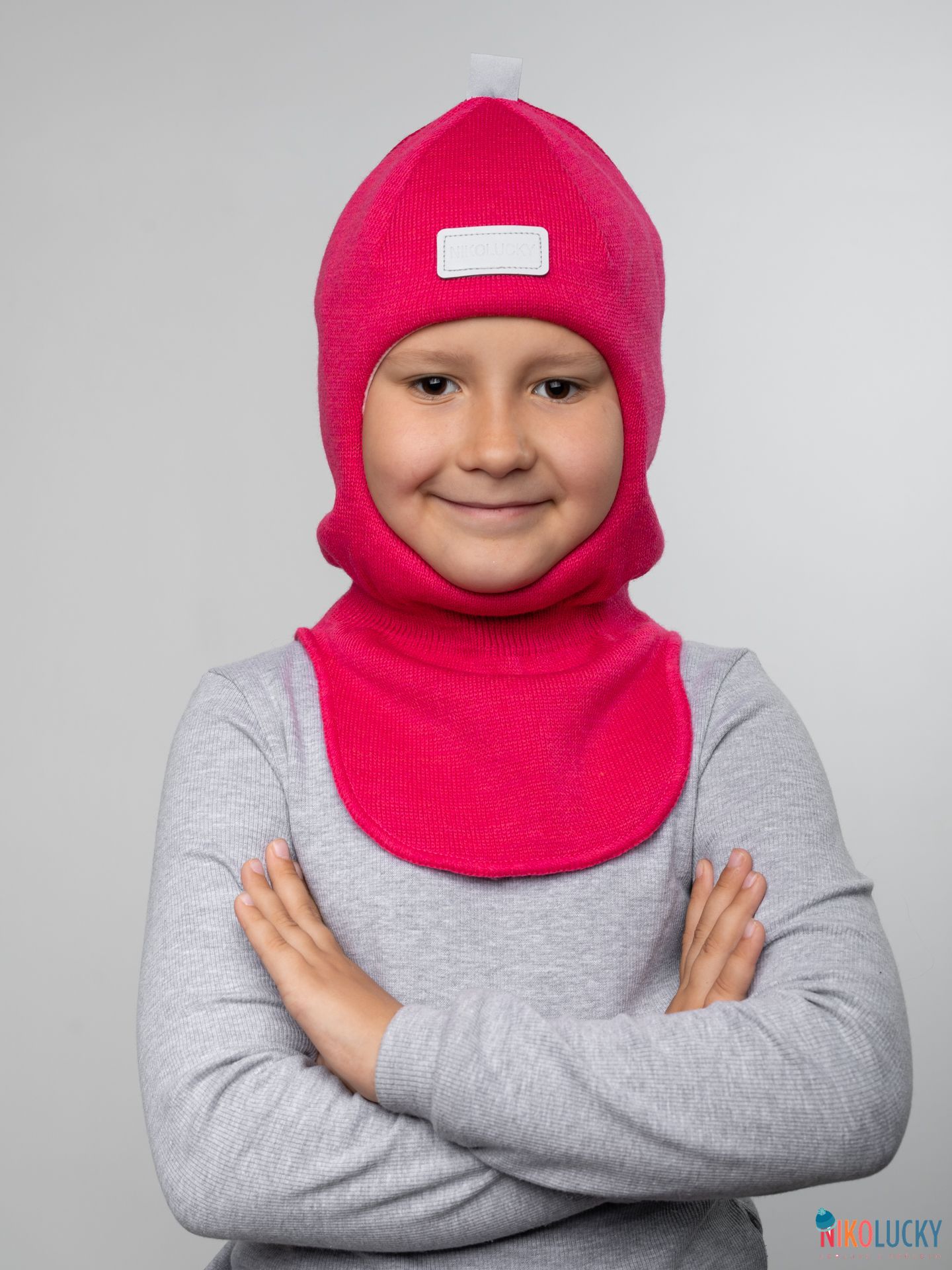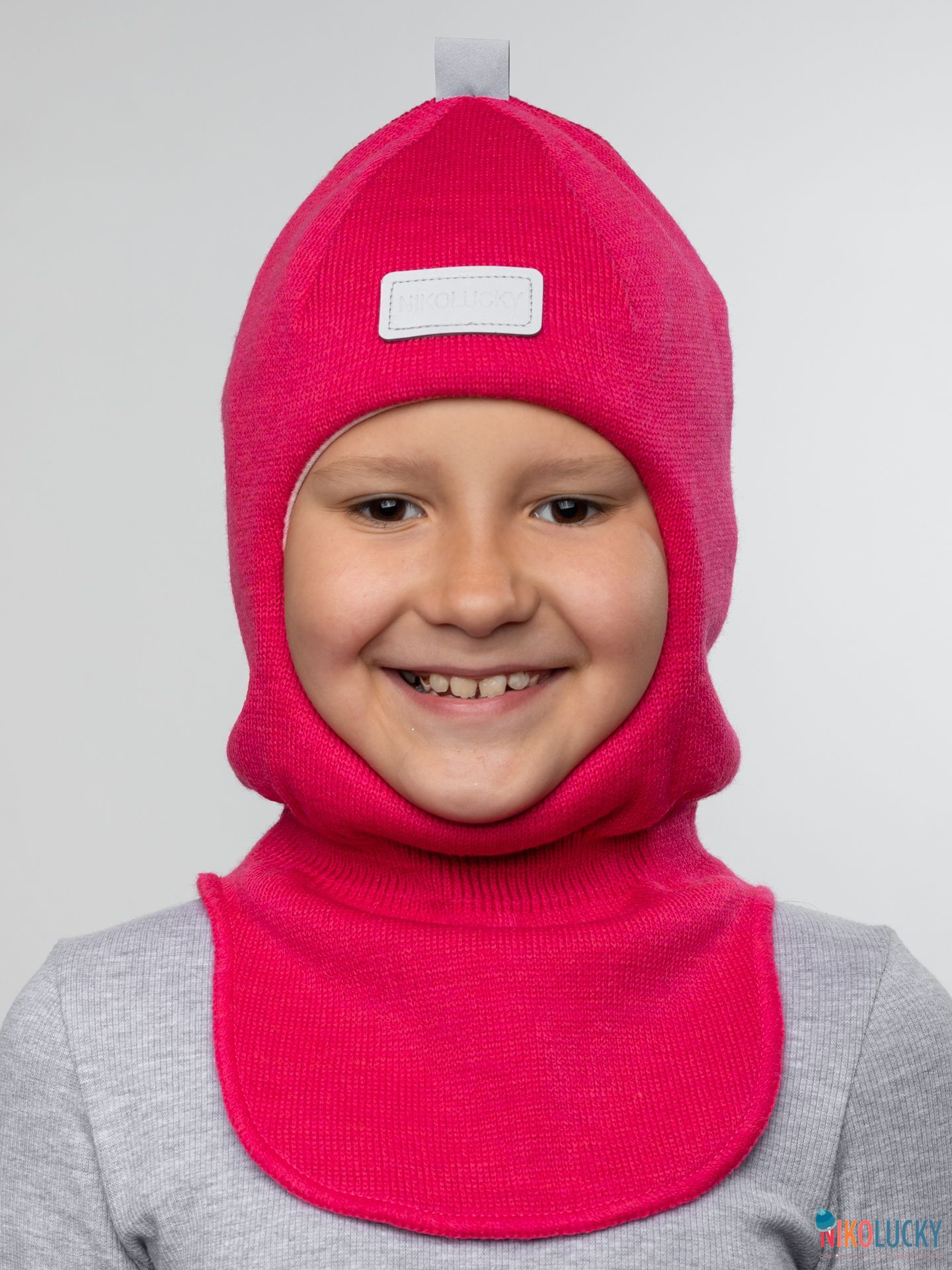 Шапка шлем детская украшена фирменной светоотражающей нашивкой NIKOLUCKY и тесьмой, которые обеспечат безопасность вашего ребенка в темное время суток.