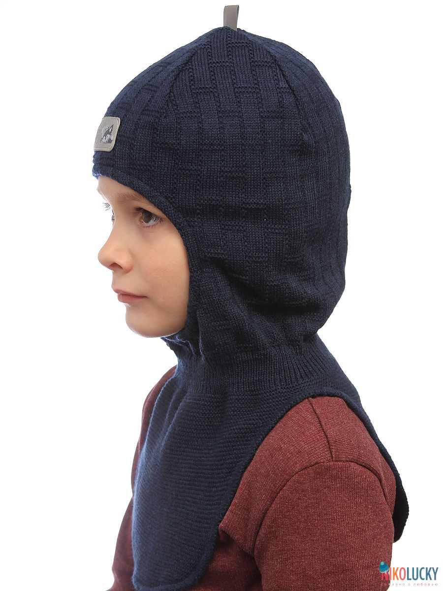 Головной убор для мальчика связан из пряжи с 30% содержанием шерсти мериноса, а подкладка выполнена из трикотажного полотна с содержанием 95% хлопка 5% лайкры. Для дополнительной защиты от холода и ветра шапка для мальчика в области ушей имеет ветрозащитные вставки.