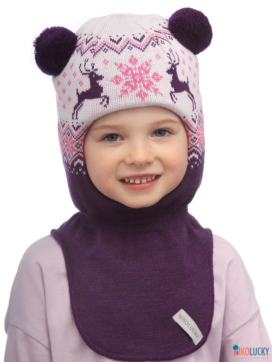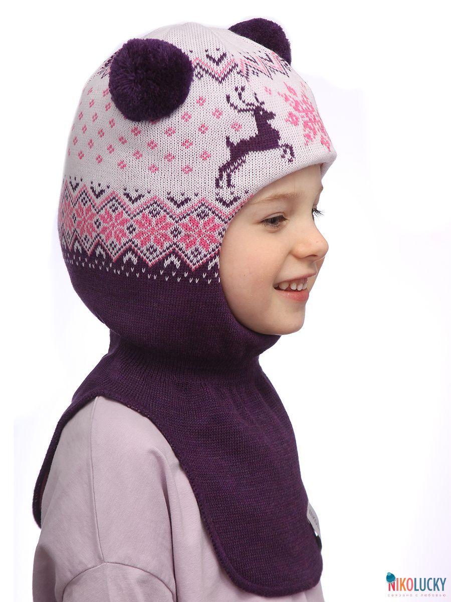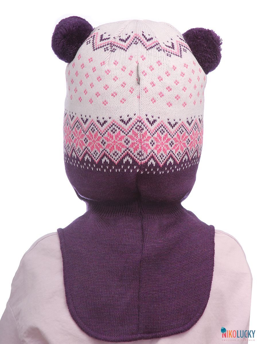 Шапка-шлем двойной зимний для девочки с двумя помпонами.