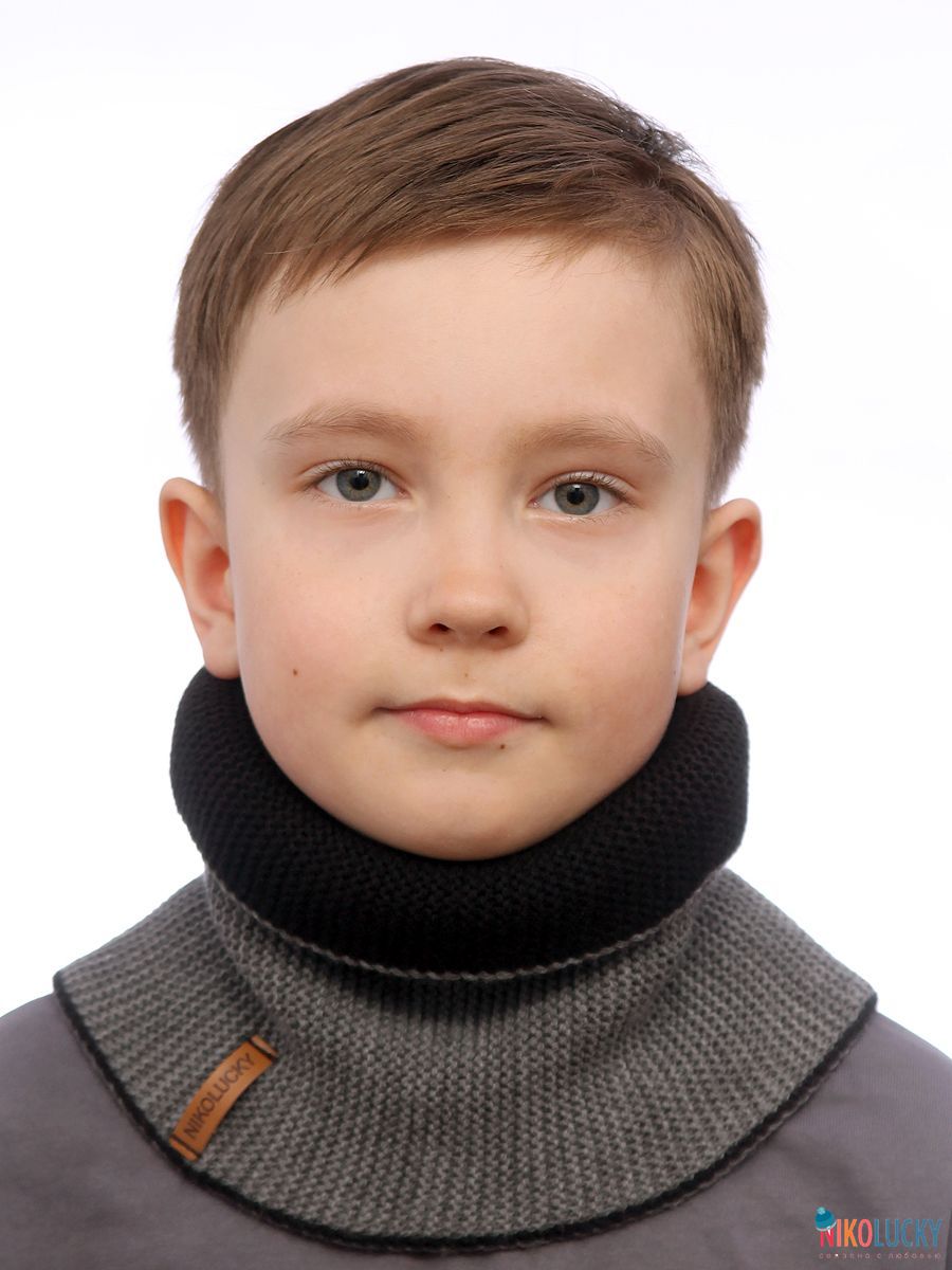 Шарф(снуд) двойной, двухсторонний для мальчика с фирменной нашивкой из кожзама.