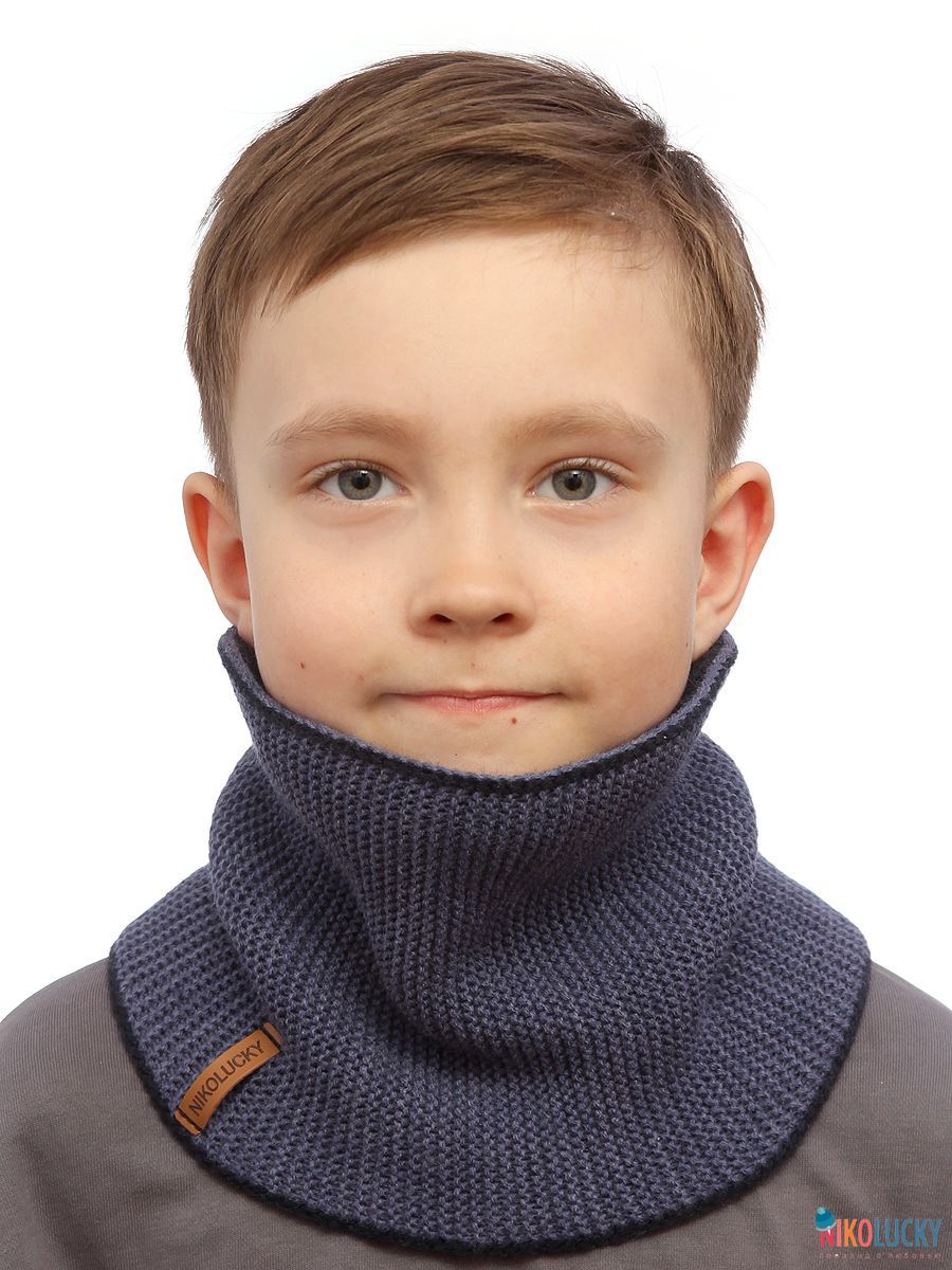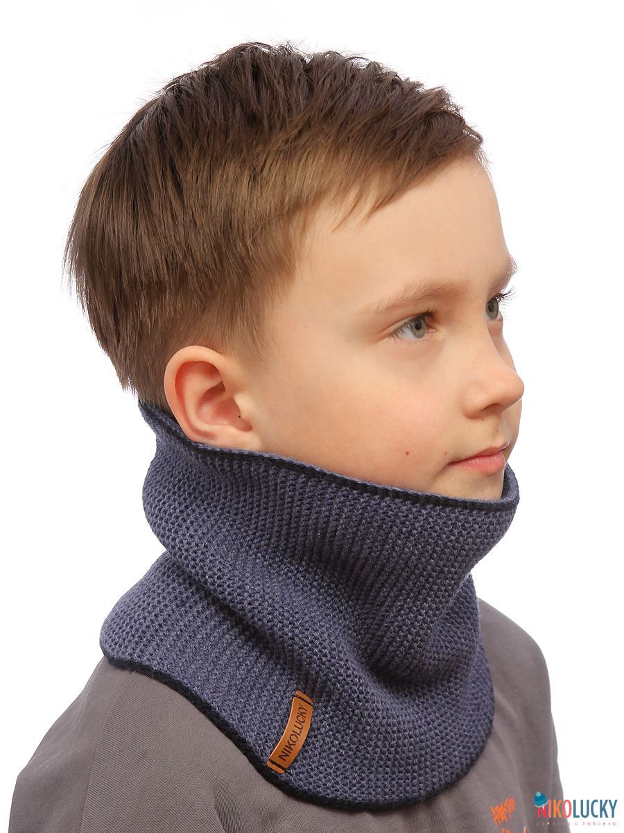 Шарф(снуд) двойной, двухсторонний для мальчика с фирменной нашивкой из кожзама.